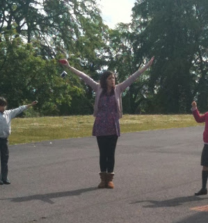 When we went out, the teacher briefly encouraged the children to recall the different angles they have studied. The teacher and children made different angles with their bodies. Naturally, acute angles look remarkable like crocodile jaws!