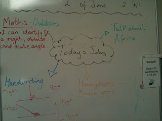 Recently, I observed a super lesson about angles. I knew things were looking up the moment I arrived in the classroom. To begin with, the teacher had this written on her board: