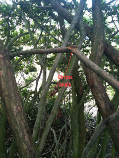 Back in the class, the follow up discussions remained interesting. The children had enjoyed exploring angles. They came up with the next steps of working out the sizes of angles by measuring them. Here the Carpenter app on the iPad has an excellent large protractor. An older class had tried measuring the angles of branches and found it surprisingly tricky, as illustrated below – I haven’t been very accurate here!